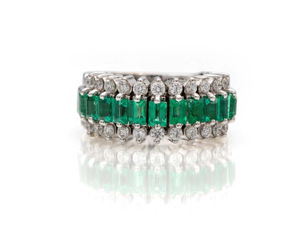 D&D Gioielli - Anello in oro brillanti e smeraldi Oro bianco 750/000. Peso complessivo gr 14,50 Mis 16