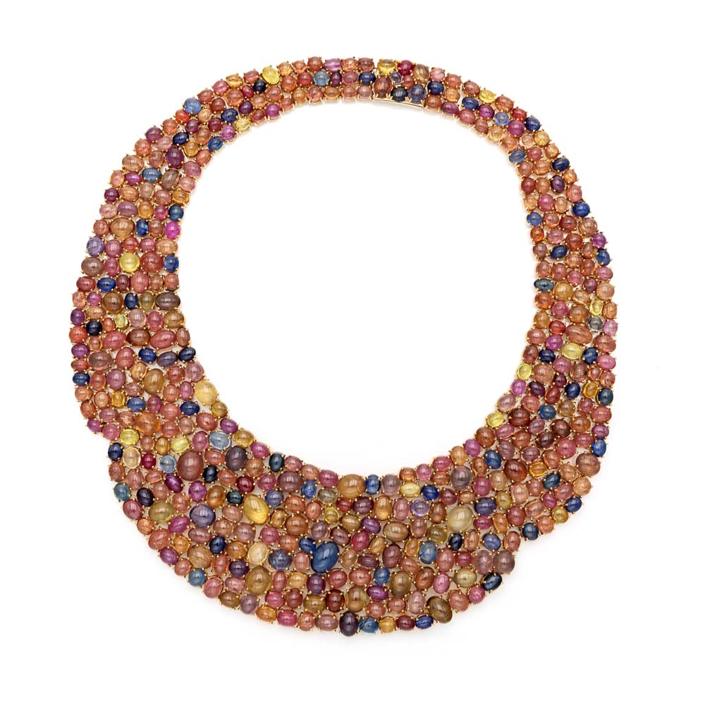 Michele della Valle, importante collana in oro, rubini, zaffiri e topazi Oro...
