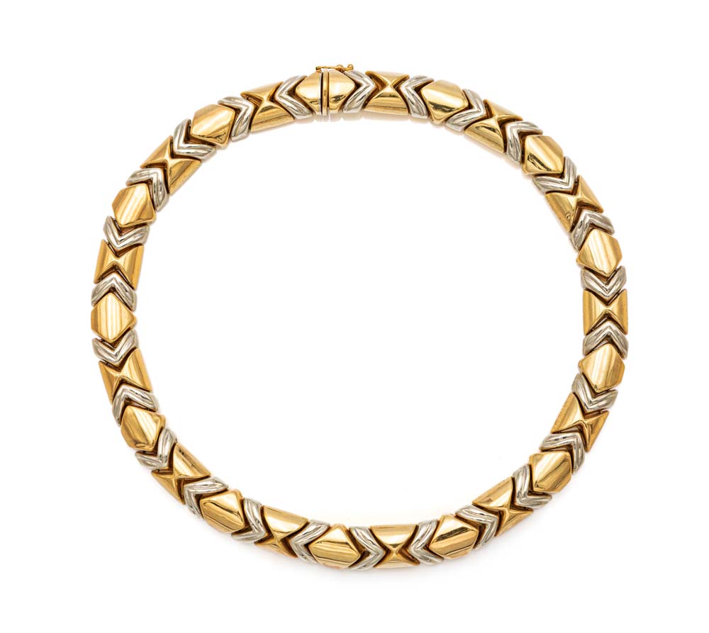 Girocollo in oro Oro giallo e bianco 750/000. Peso complessivo gr 69,3 veste...