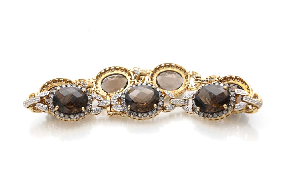 Lotto 58 | Bracciale in oro, brillanti, brillanti fancy e quarzi Oro giallo e bianco...