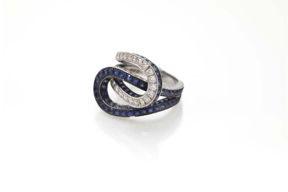 Anello in oro, zaffiri e brillanti Oro bianco 750/000. Peso complessivo gr 9,20 Misura 14