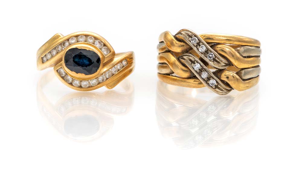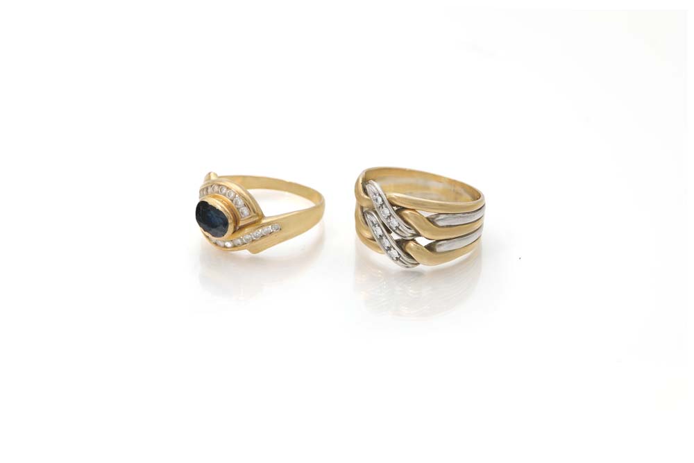 Coppia di anelli in oro Oro giallo 750/000. Peso complessivo gr 10,10