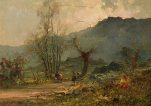 GHEDUZZI CESARE Crespellano 1894-1944 Torino Paesaggio Olio su tela 50x70 cm Firma in basso a sinistra Già Galleria Fogliato, Torino, etichetta al retro Oil on canvas Signed lower left
