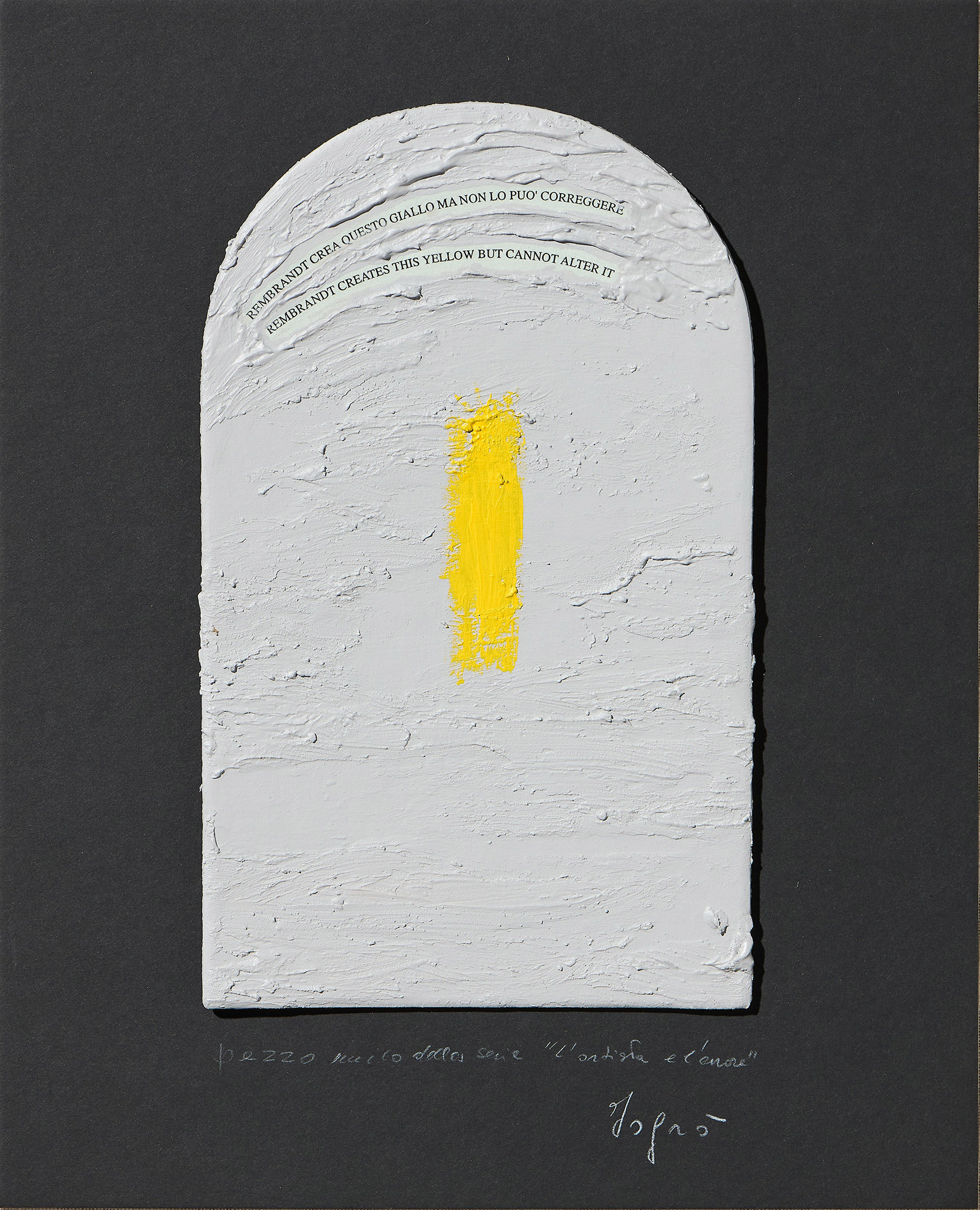 Scritta e firma in basso al centro: Pezzo unico dalla serie "L'artista e l'errore" / Isgrò.