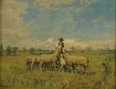 GHEDUZZI GIUSEPPE Crespellano 1889-1957 Torino Pascolo Olio su tavola 50x65...