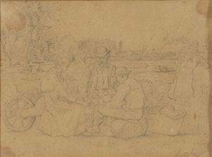 COSOLA DEMETRIO San Sebastiano Po 1851 - 1895 Chivasso Riposo nei campi Matita su carta 15x22 cm Firma in basso a destra Esp. : 2001, 27 Ottobre/25 Novembre, Chivasso Palazzo del Lavoro Lugi Einaudi, "Demetrio cosola 1851/1895 - Mostra Antologica nel 150° anniversario della nascita", opera esposta. Bibl.: - Opera citata alla pag.151 della monografia dell'artista Pencil on paper Signed lower right