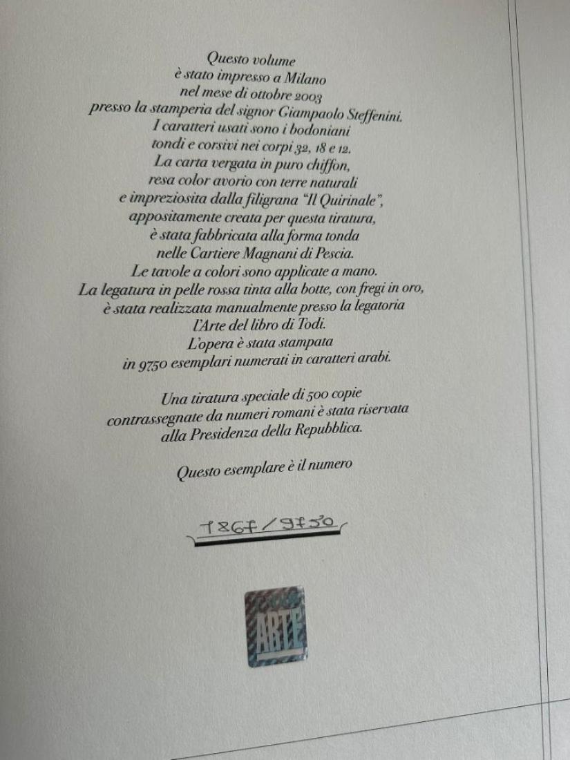 Precedente Lotto 265 Successivo Art Code Casa d'Aste - Via S. Leonardo Palazzo Milara 26, 84131 Salerno Asta N.34 - Arte Moderna e Contemporanea Sessione unica dal lotto 1 al lotto 297 venerdì 28 novembre 2025 ore 14:30 (UTC +01:00) FMR, Il palazzo del Quirinale FMRIl palazzo del Quirinalelibro