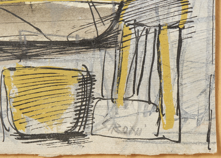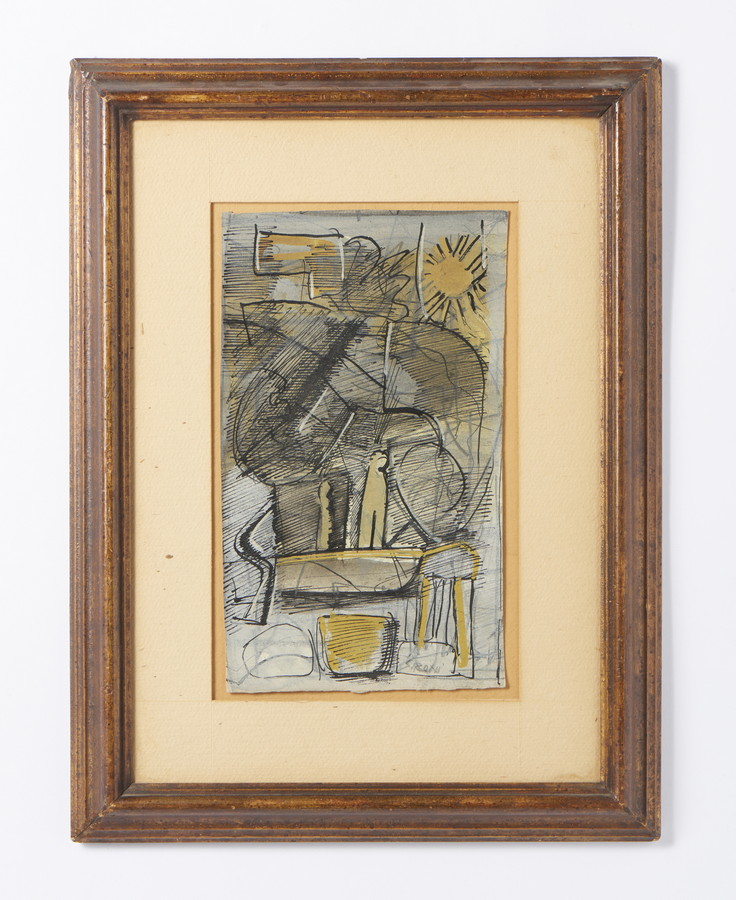 SIRONI MARIO (1885 - 1961) COMPOSIZIONE, (1953 ca.). Tempera, china, tempera diluita e matita su cartoncino. Cm 15,00 x 26,00. firma apocrifa