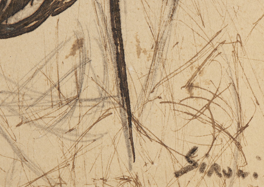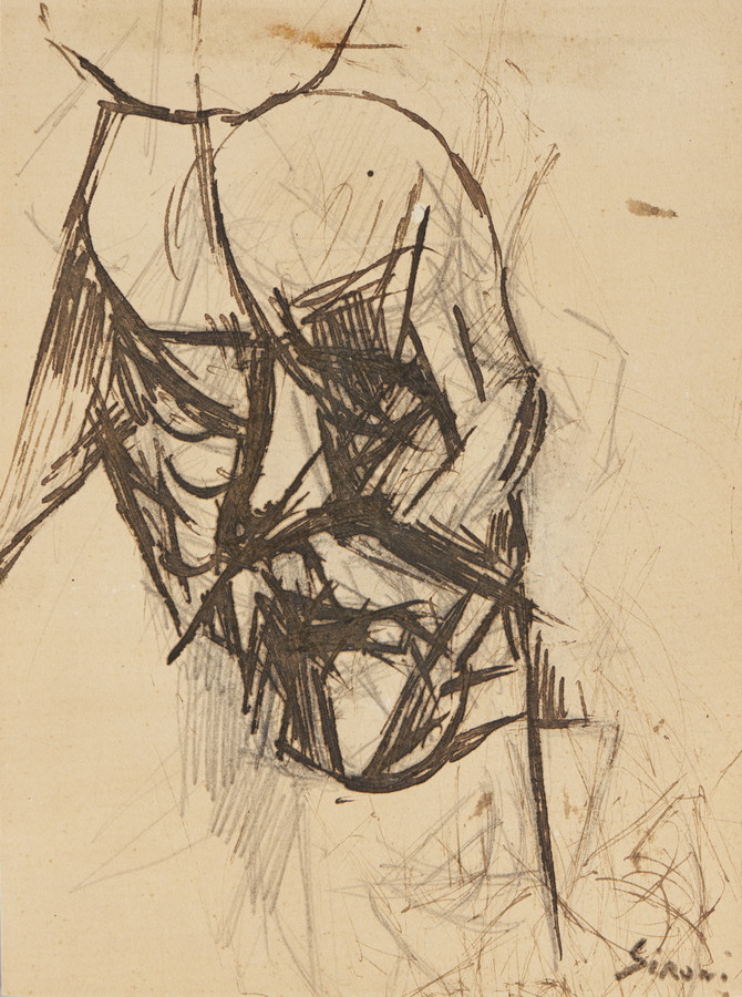 SIRONI MARIO (1885 - 1961) TESTA FUTURISTA, 1913 ca. China e matita su carta. Cm 12,00 x 17,00. firma apocrifa, con probabilità apposta da Matilde Fabbrini Sironi