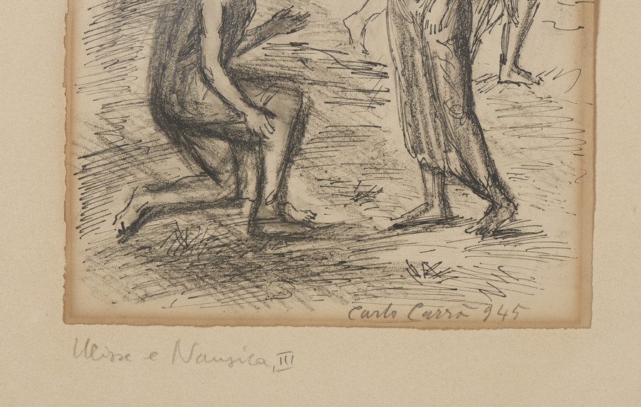 CARRA' CARLO (1881 - 1966) ULISSE E NAUSICAA,III. 1945. Inchiostro e matita su carta. Cm 19,50 x 25,50. firma, data e titolo