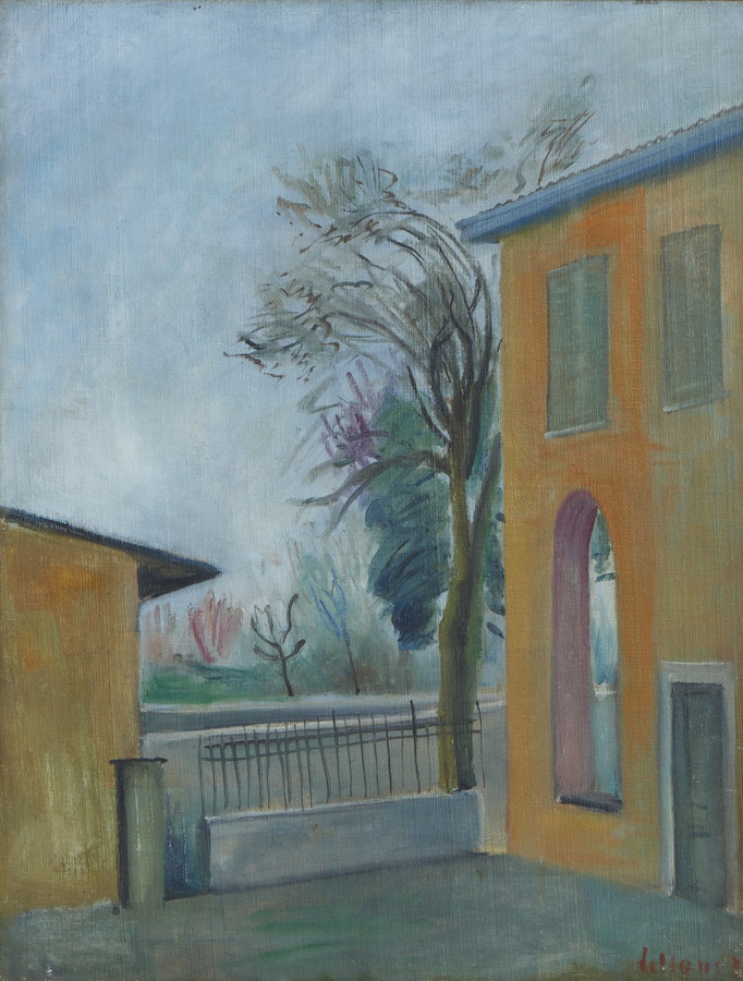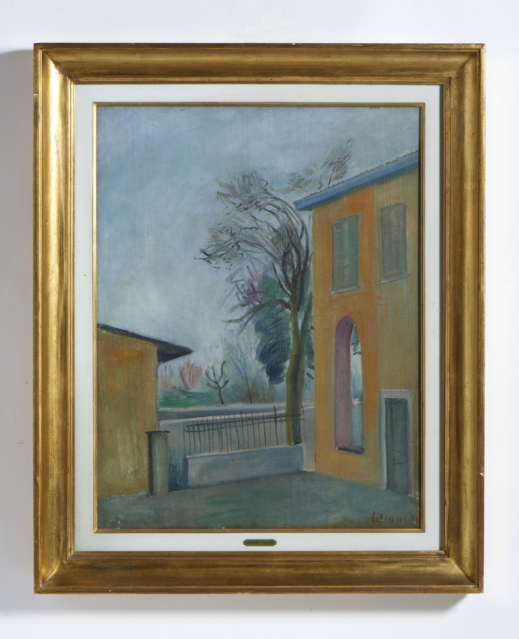 LILLONI UMBERTO (1898 - 1980) CORTILE A BOFFALORA. 1930. Olio su tela. Cm 50,50 x 65,50. firma e data