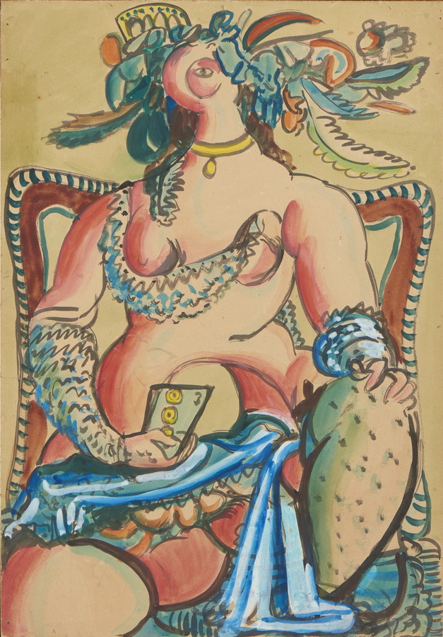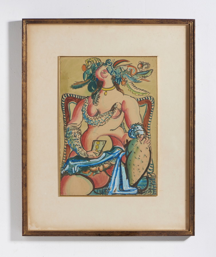 FIUME SALVATORE (1915 - 1997) LA CARTOMANTE. 1945. mista su carta. Cm 35,20 x 50,20. sul retro: etichetta descrittiva