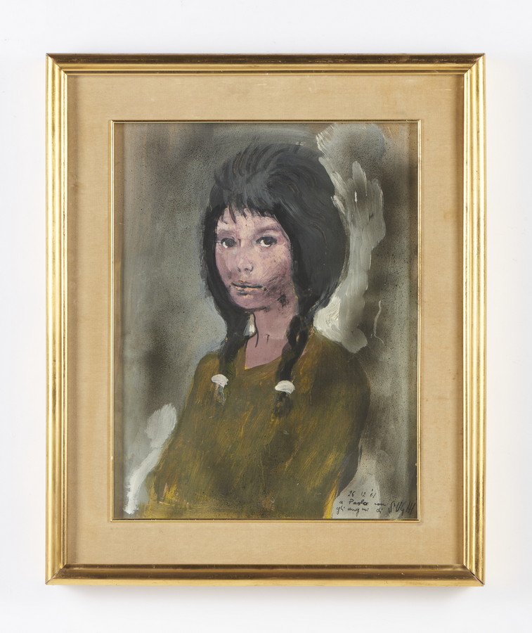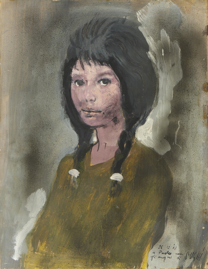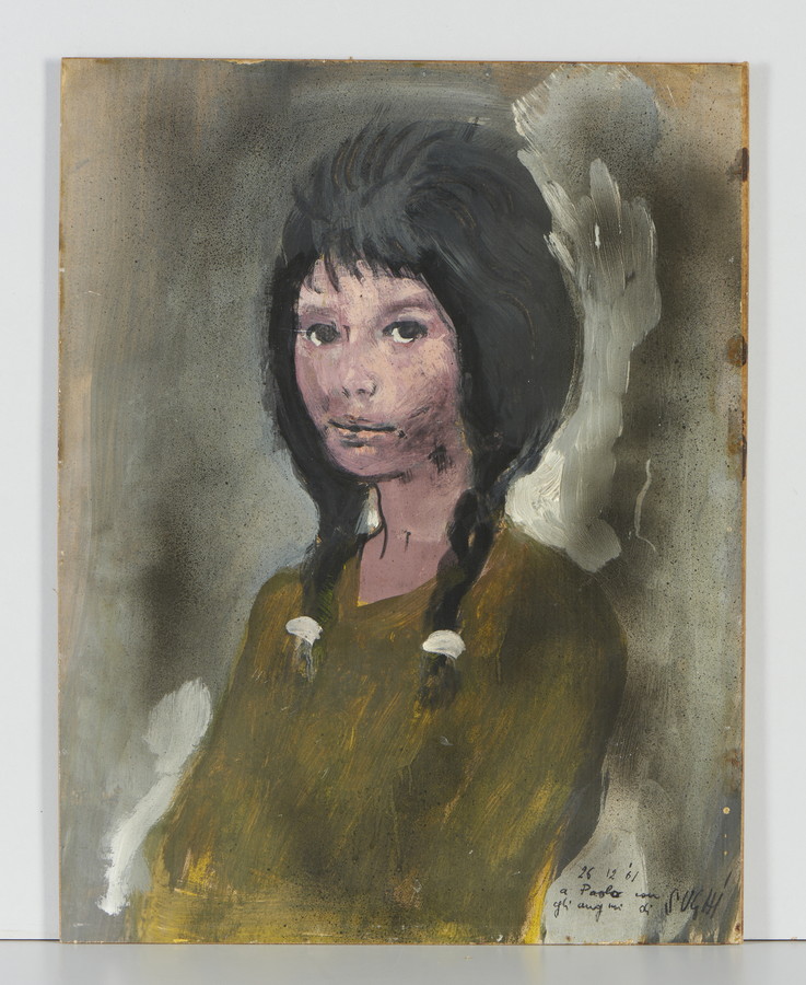 SUGHI ALBERTO (1928 - 2012) RAGAZZA CON TRECCE. 1961. Olio su tavola. Cm 36,00 x 46,50. firma, data e dedica ad personam