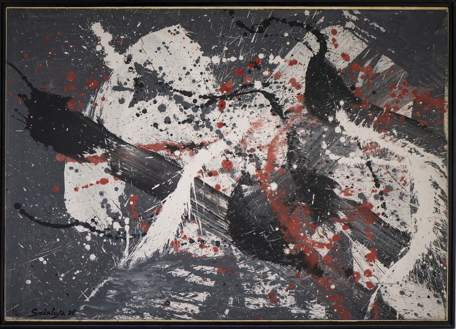SCIALOJA TOTI (1914 - 1998) SENZA TITOLO. 1986. olio su cartone applicato su tavola. Cm 101,00 x 71,00. firma e data
