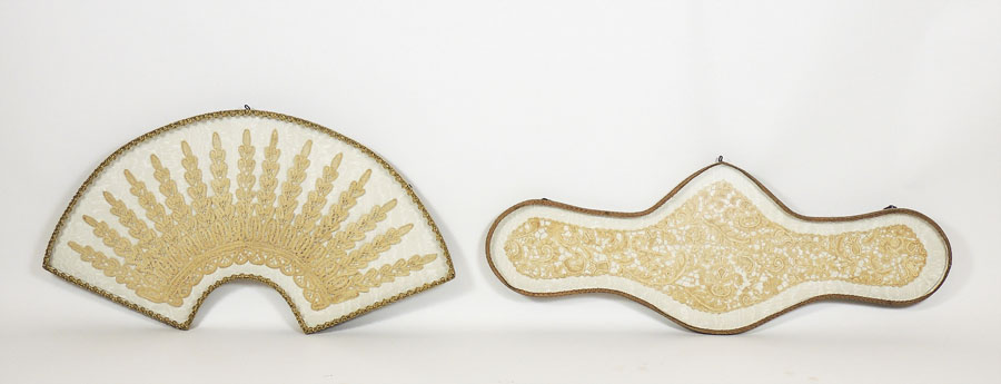 DUE FRAMMENTI DI ANTICO PIZZO entro cornici a teca TWO FRAGMENTS OF AN ANTIQUE LACE