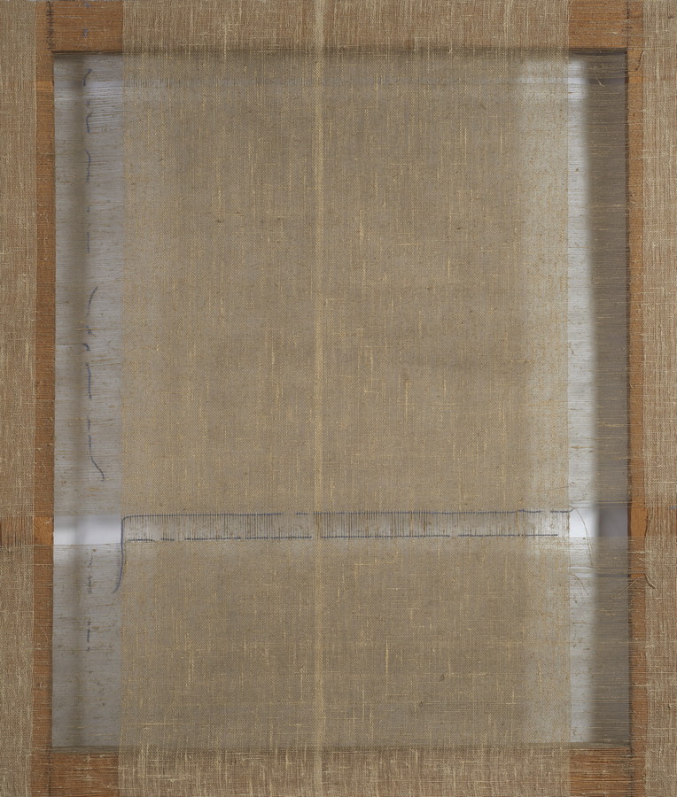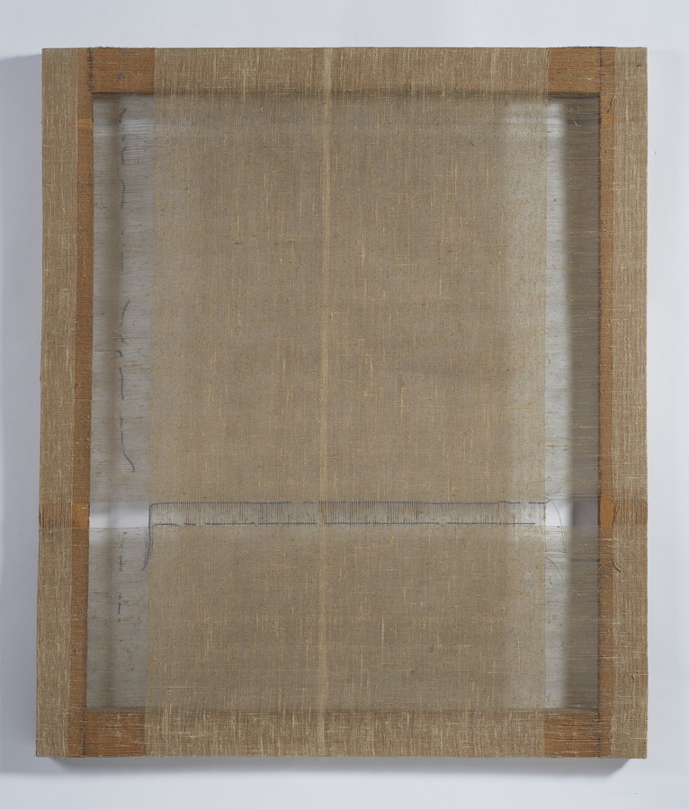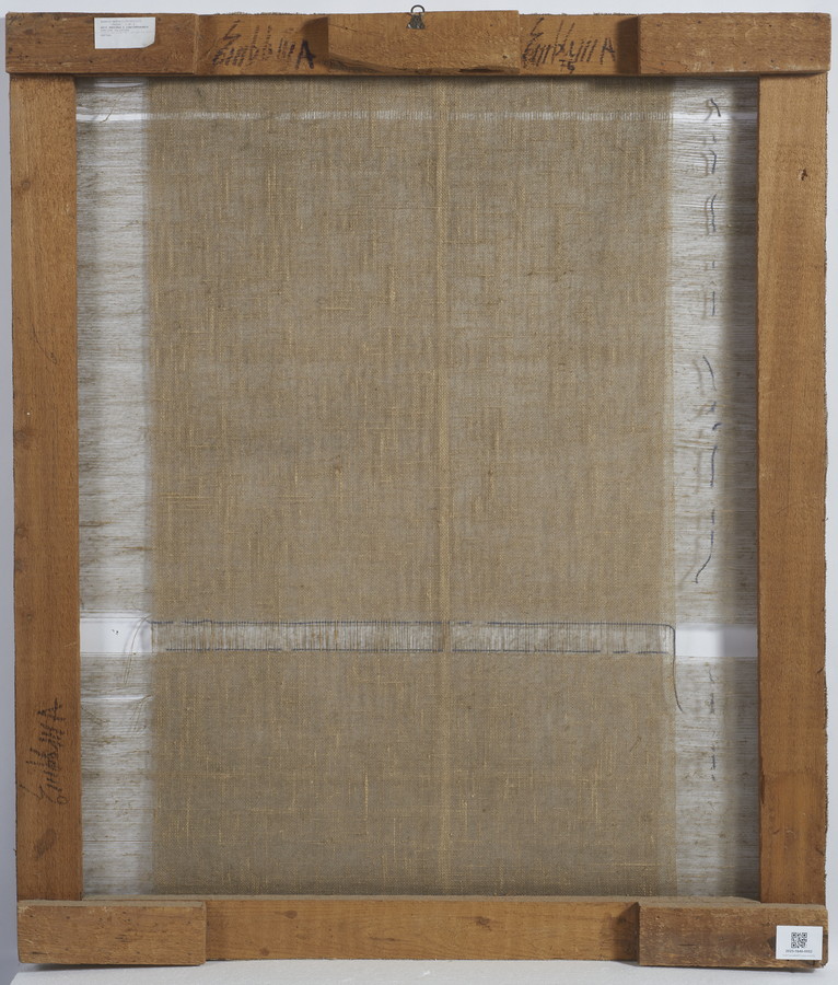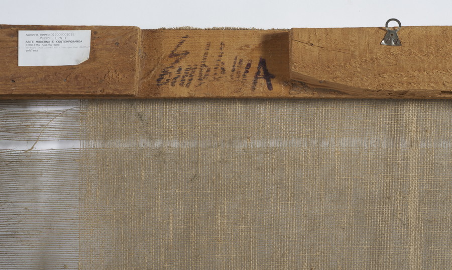EMBLEMA SALVATORE (1929 - 2006) TRASPARENTE. 1975. detessiture e fili di lana su tela di juta. Cm 94,50 x 110,00. sul retro: firme e data