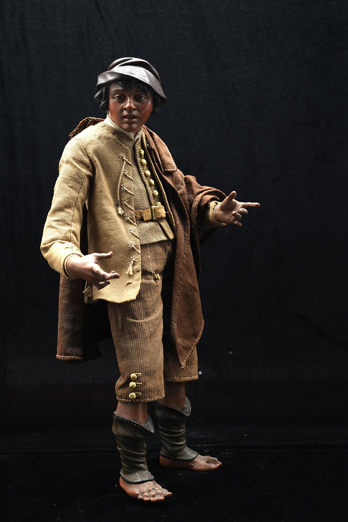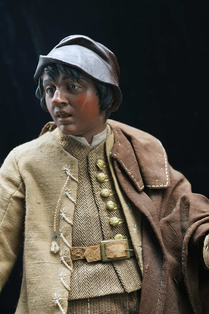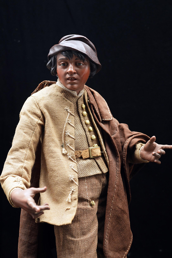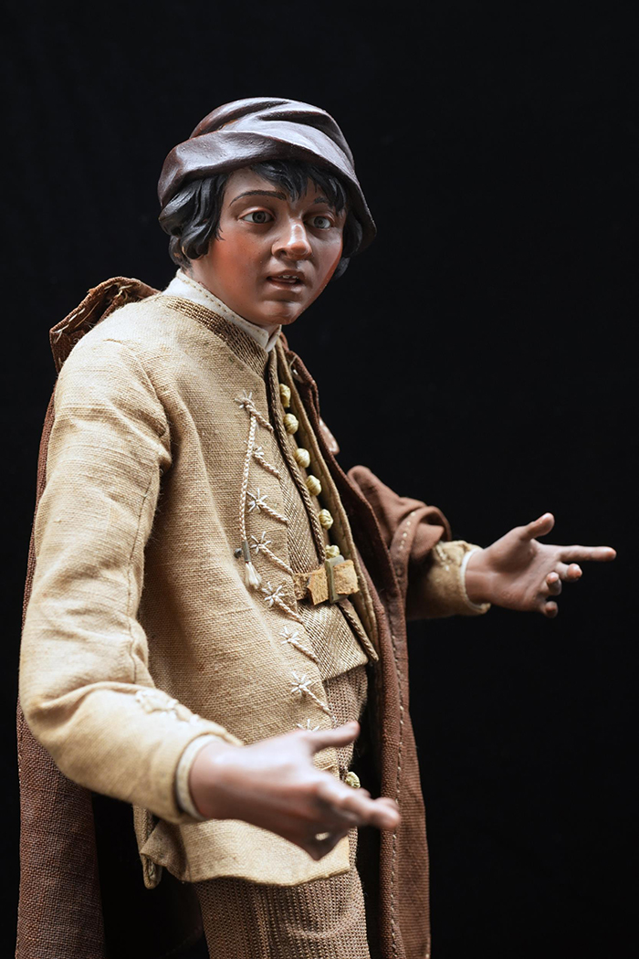 Ragazzo rustico di . L. Mosca (in attività dal 1760 al 1789) con berretta in creta dalla scena "L'Annuncio ai pastori" h cm 29,5 Provenienza: coll. V. Catello; coll. S. Catello; coll. privata, Napoli Esposizioni: Venezia, 1927 Bibliografia: Figure presepiali napoletane dal secolo XIV al secolo XVIII. Catalogo della mostra,Napoli 1970, tav. 64