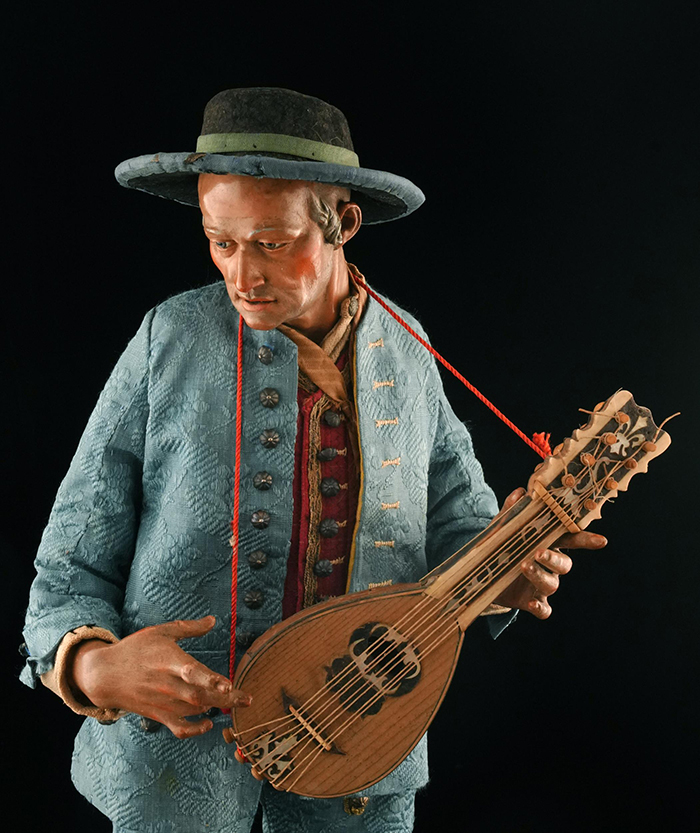 Musicante h cm 40 accessori: mandolino e cappello Napoli XVIII - XIX secolo