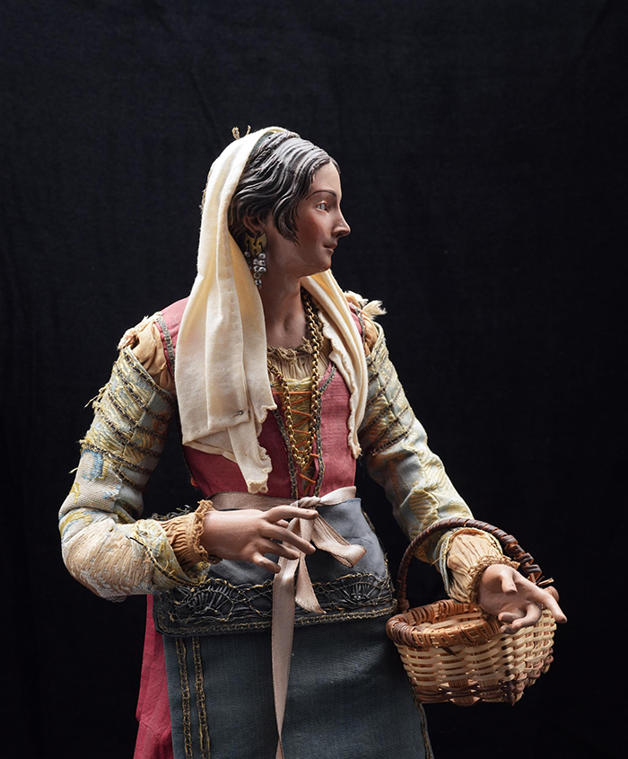 Giovane donna h cm 37,5 accessori: collana, orecchino, cestino Napoli XVIII - XIX secolo