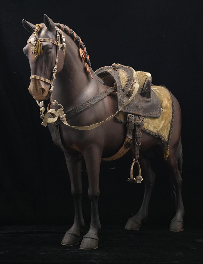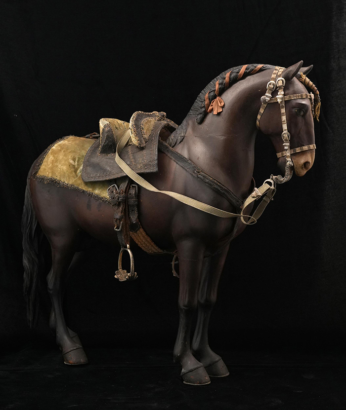 Cavallo in legno, cm 40x50 accessori: briglie con finimenti in argento Napoli XVIII - XIX secolo