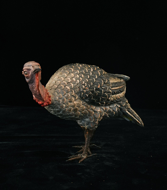 Tacchino in terracotta policroma h cm 9,5 l cm 14 Napoli XVIII - XIX secolo