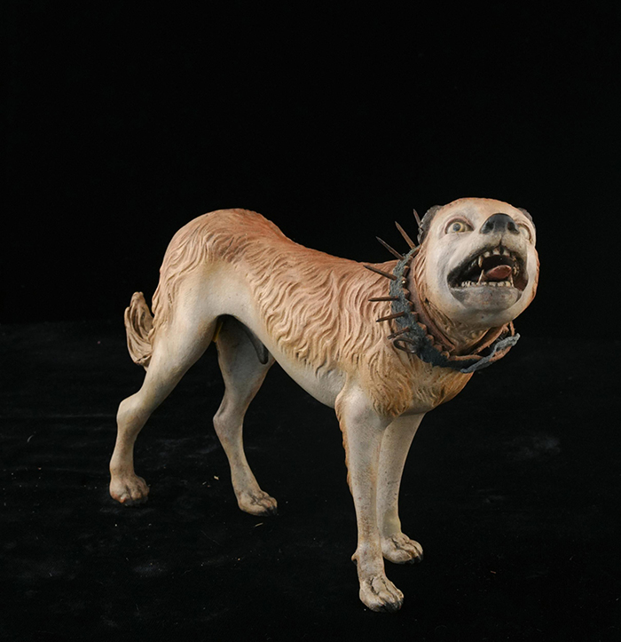 Cane in legno h cm 13 l cm 20 accessori: collare Napoli XVIII - XIX secolo