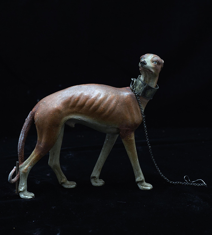 Levriero in terracotta policroma cm 13x13 accessori: collare Napoli XVIII - XIX secolo