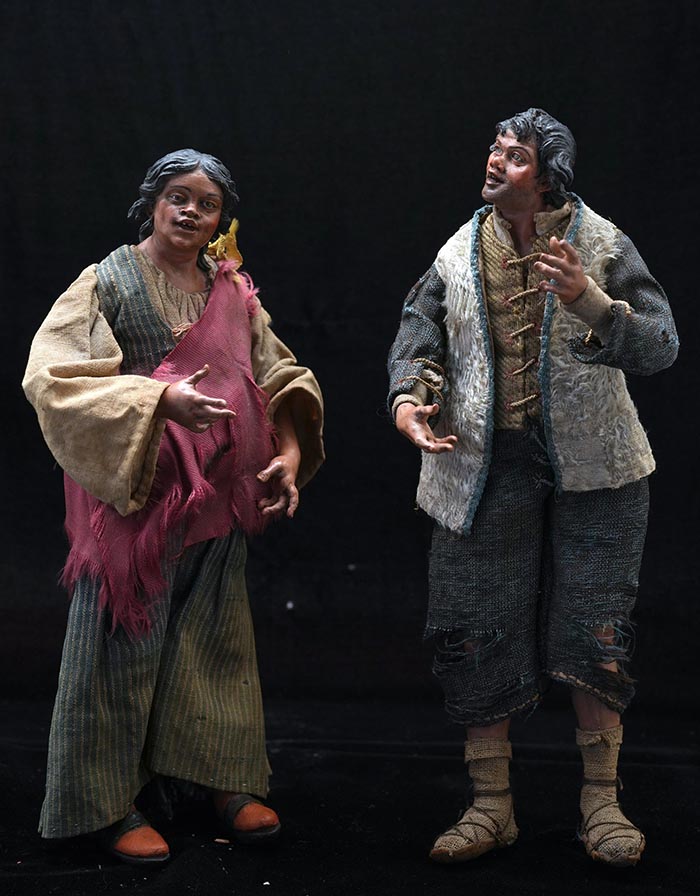 Coppia composta da: Ragazza di faccende h cm 23,5 Rustico h cm 24,5 Napoli XVIII - XIX secolo