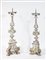 COPPIA DI TORCIERE IN LEGNO INTAGLIATO E ARGENTATO Toscana, XIX secolo fusto a balaustro, decoro a volute e foglie, base poggiante su tre piedi a ricciolo h cm 69 Pair of Carved and Silvered Wood Prickets, Tuscany, 19th Century