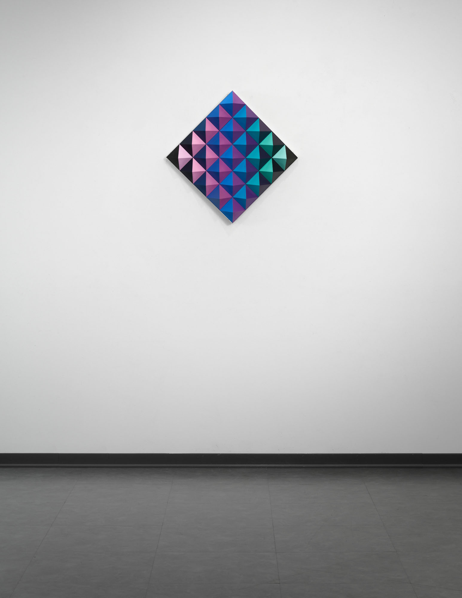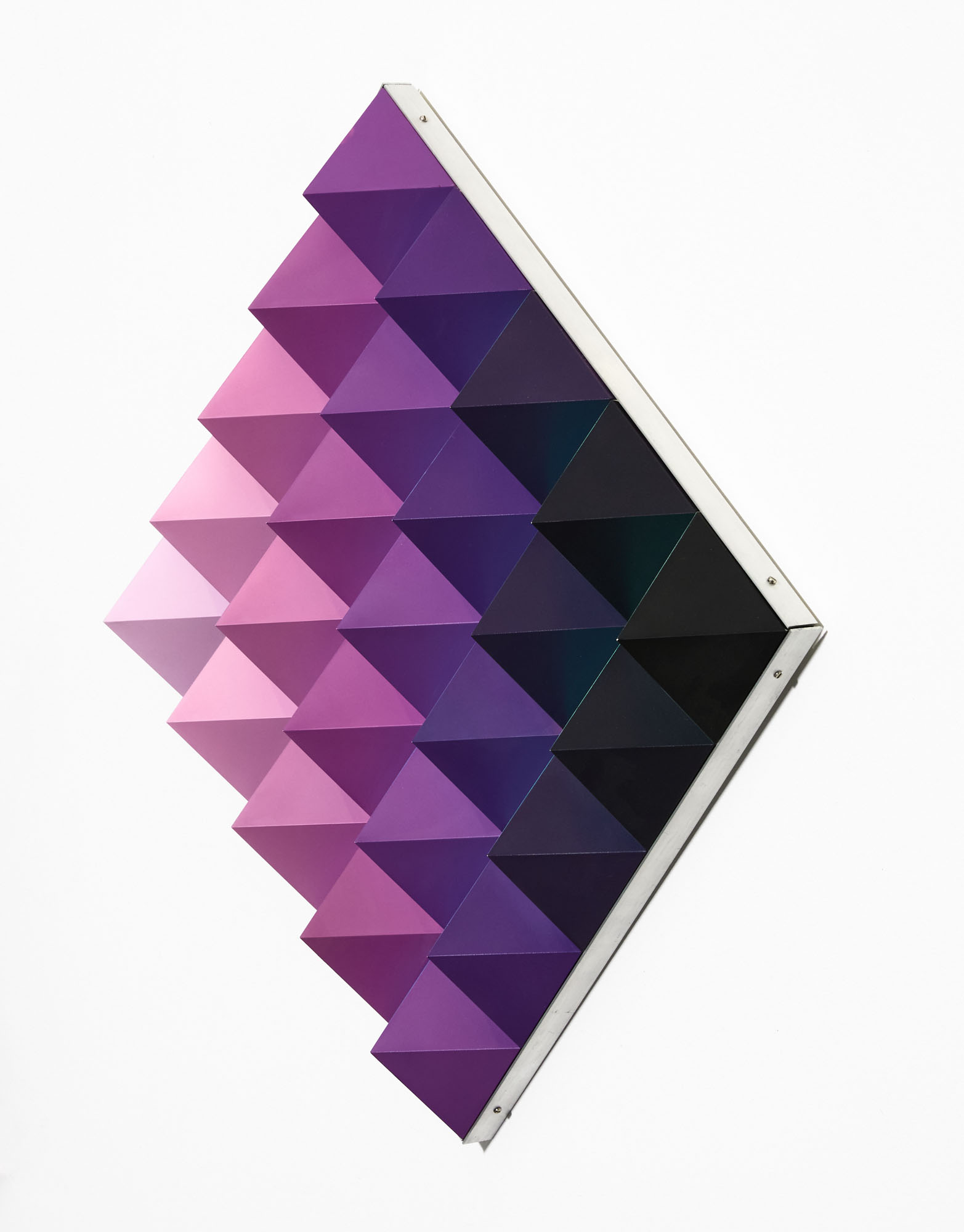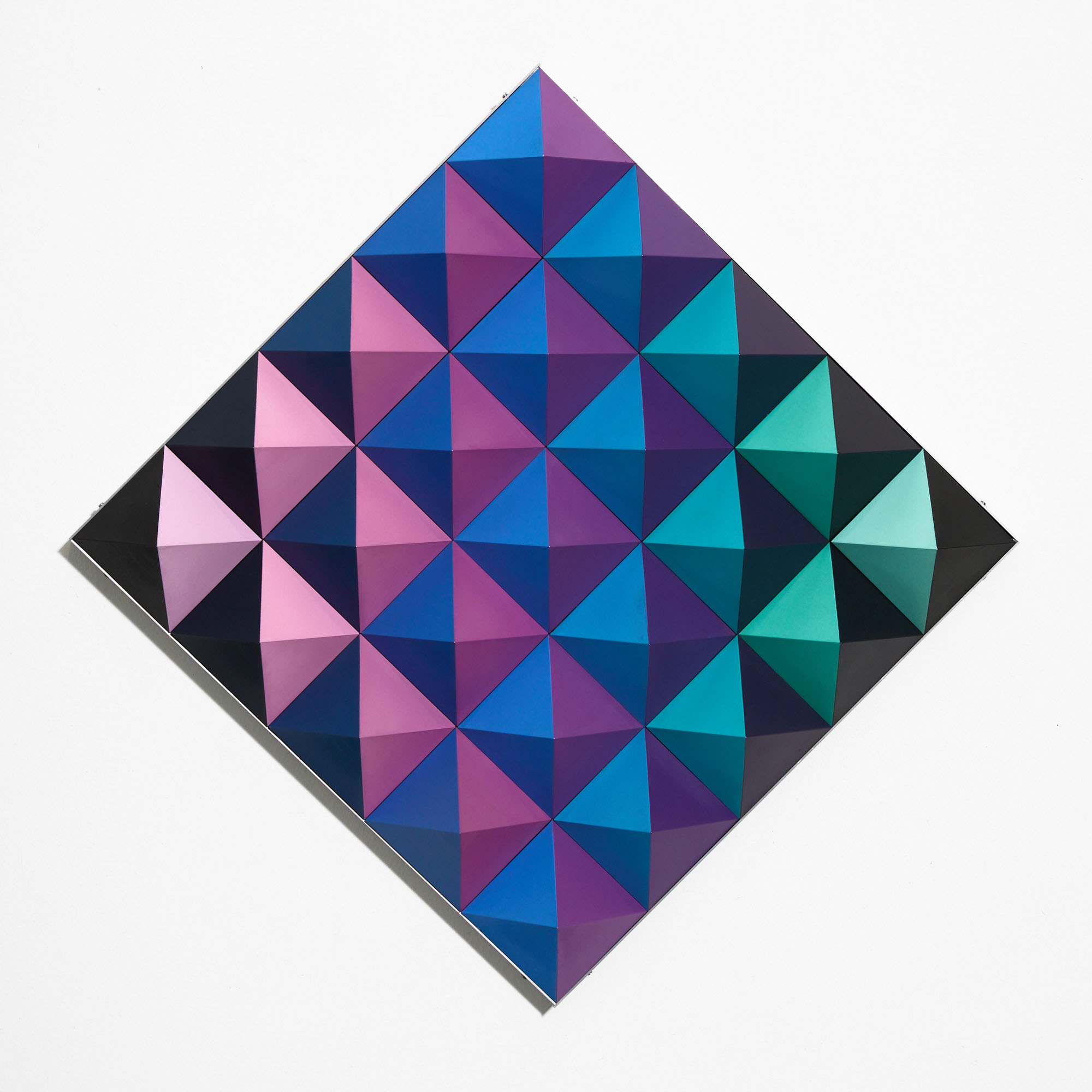 Rilievi con piramidi, acrilico su polistirene, cm 70,5 x 70,5 x 10 (lato cm 50 x 50)
