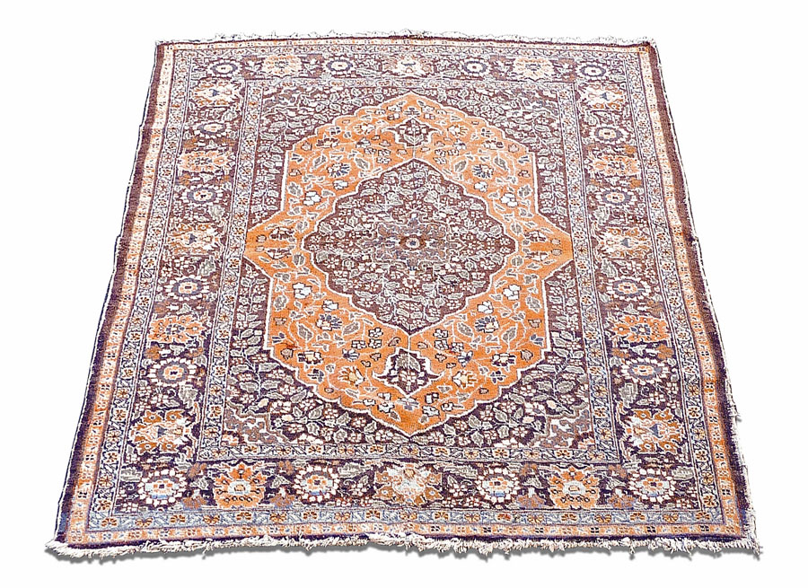 PICCOLO TAPPETO PERSIANO D'EPOCA fondo marrone, campo con medaglione centrale...