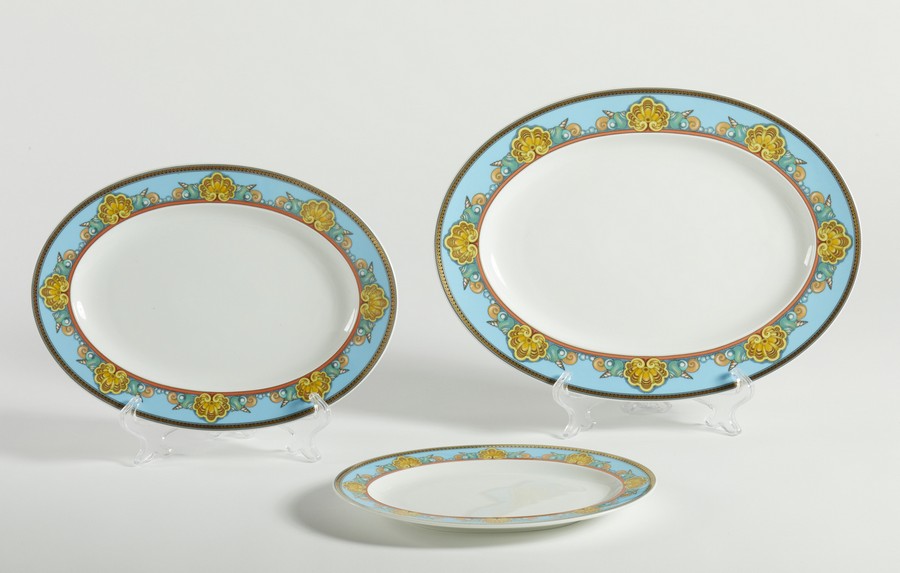 VERSACE GIANNI (1946 - 1997) Servizio di piatti Set Les Tresors De La Mer vintage di Versace per Studio Linie Rosenthal, Germania metà anni 90'. 95. . . Tre piatti ovali da portata cm 33.5x24.5- 28.5x20.5cm-40x30cm