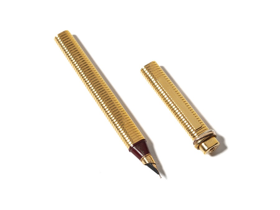 LE MUST DE CARTIER Penna Vendom Trinity. Argento. . Penna stilografica Vendom Trinity placcata oro. Con scatola e cartucce originali.
