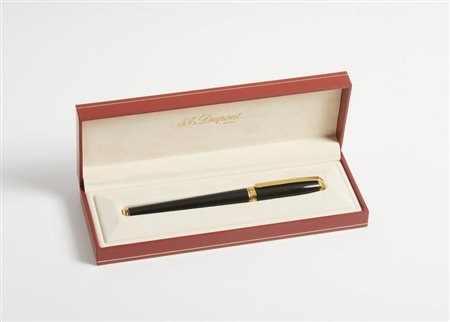 DUPONT Penna stilografica. . . Penna stilografica in resina nera, pennino in oro. Mai inchiostrata. Con cofanetto.