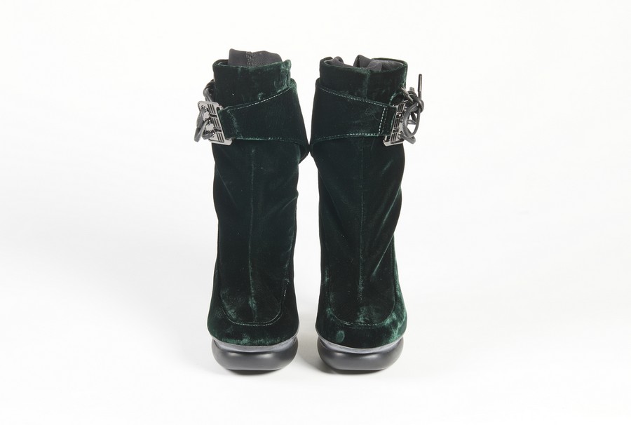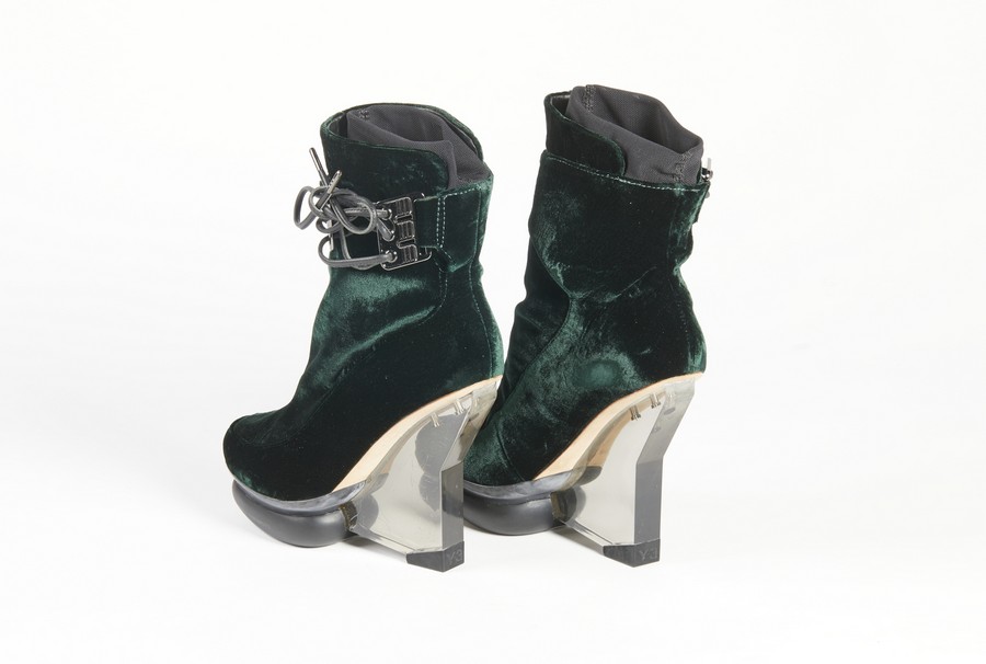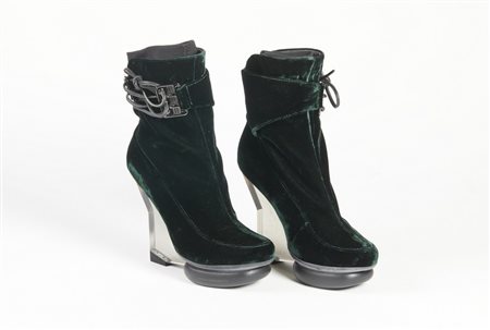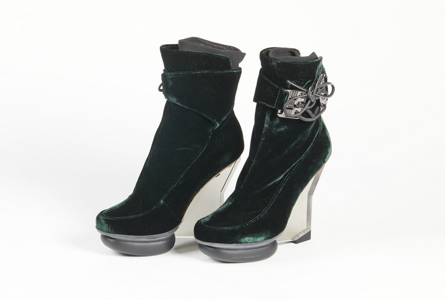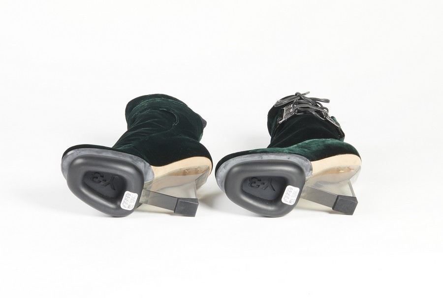 YAMAMOTO YOSHI Scarpe. Velluto. . 36.5 taglia di vestibilità, dichiarata 37 . Tacco in plexi e scarpa in velluto.