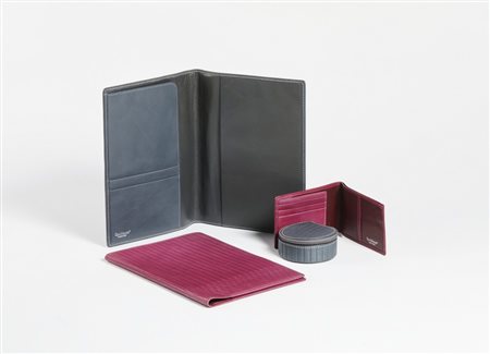 VERSACE GIANNI (1946 - 1997) Porta fogli e porta documenti. Pelle. . Lotto composto da porta documenti e portafogli (portafogli composto da spazio per gli assegni, per le banconote e per le carte)