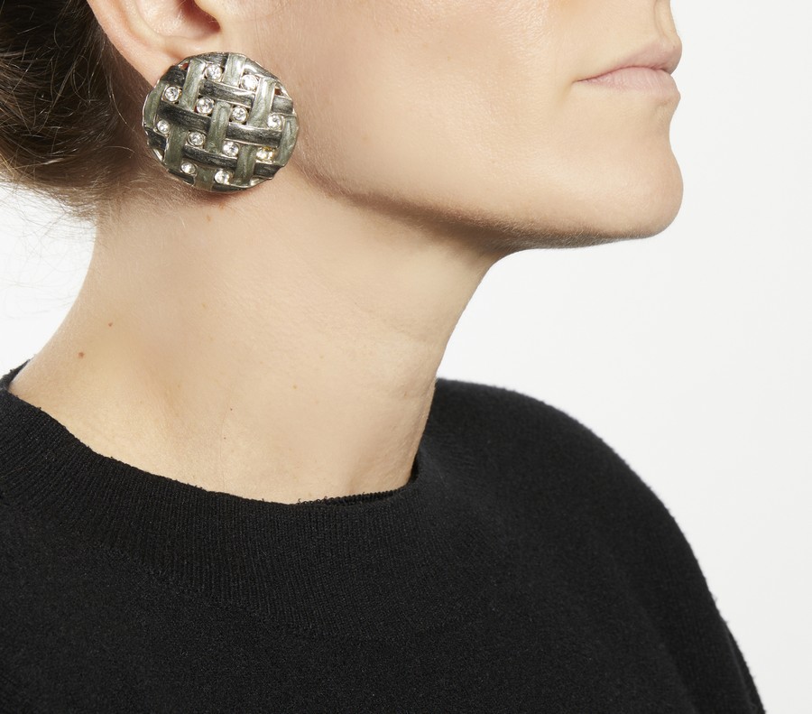 LANCETTI Orecchini. . . Orecchini rotondi in smalto grigio e cristalli.
