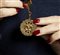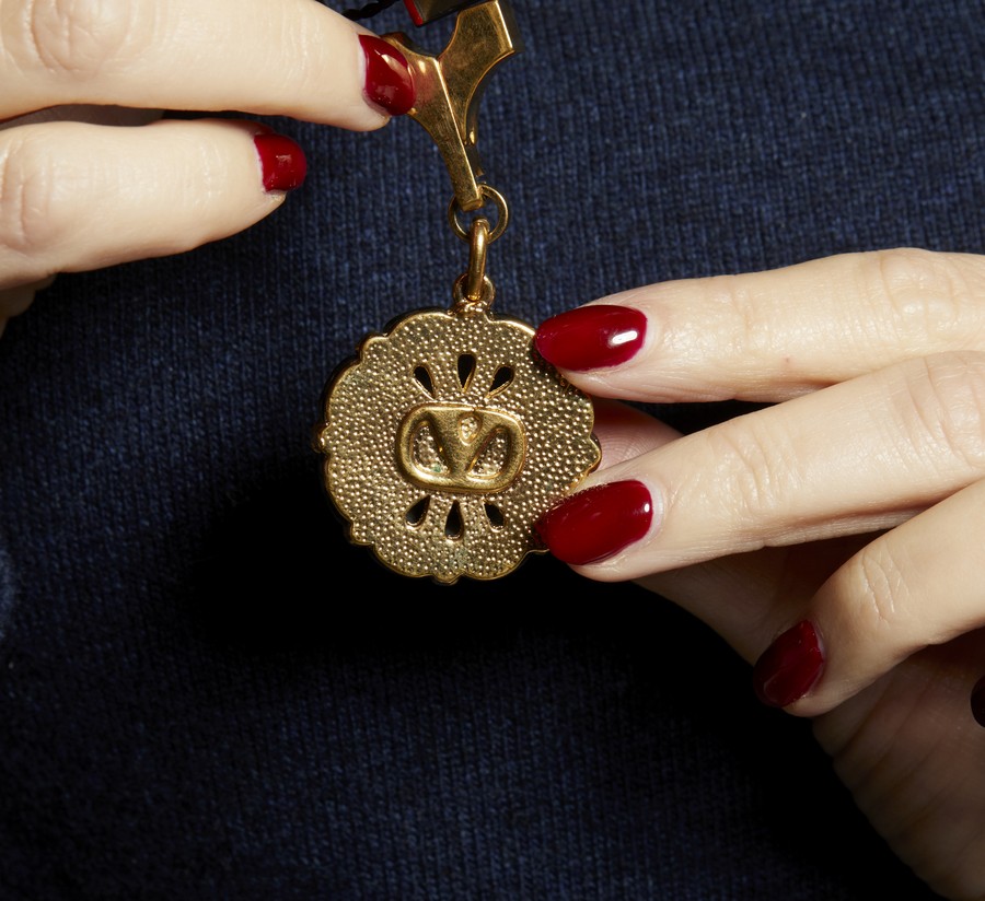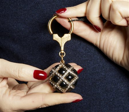 GARAVANI VALENTINO Portachiavi . Metallo dorato e cristallo.. . Portachiavi in metallo dorato, smalto nero e cristalli.