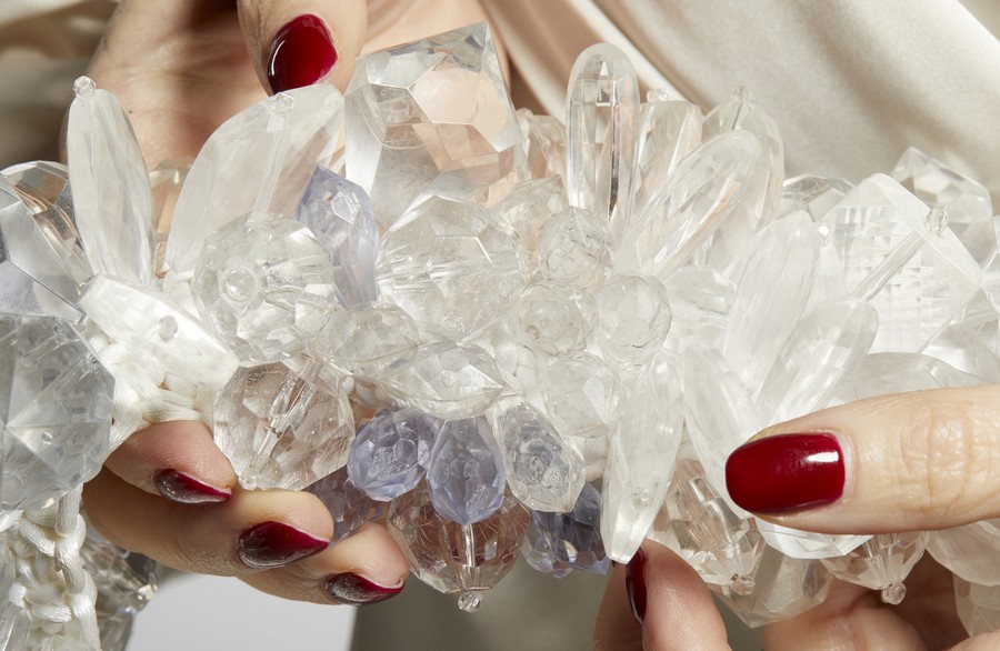 MISSONI Strepitosa collana. resina. Cm 34,00 x 10,00. Girocollo in resina trasparente e maglia lavorata. Pezzo unico