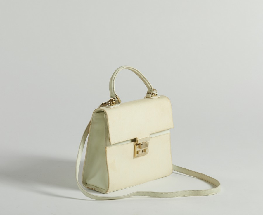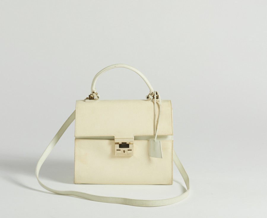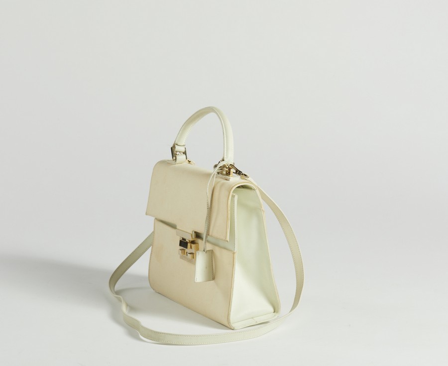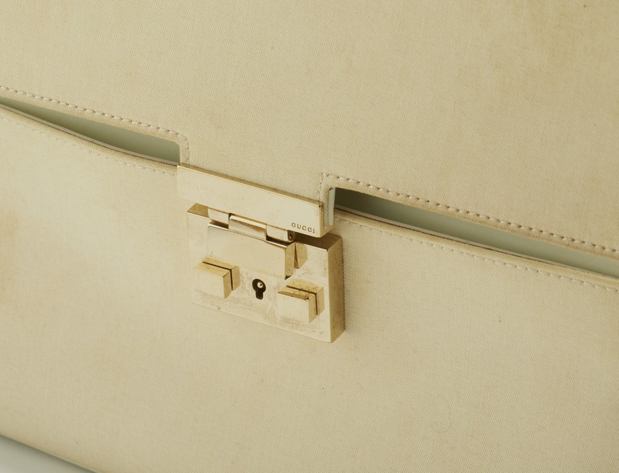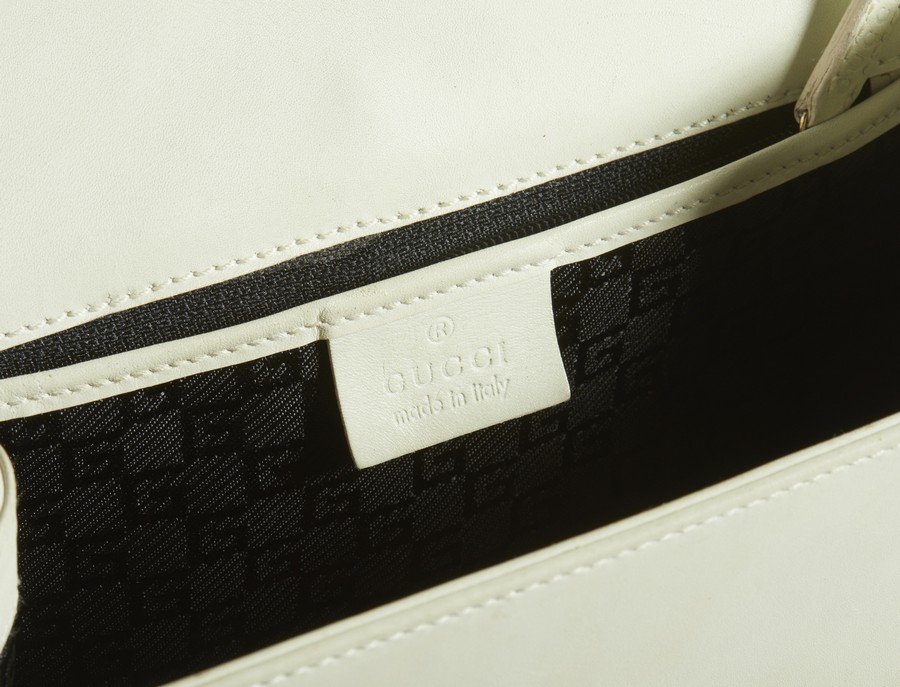 GUCCI Borsa a mano. Pelle. Cm 24,00 x 20,00 x 8,50. Borsa di Prada anni 90' in pelle beige. Presenta difetti.