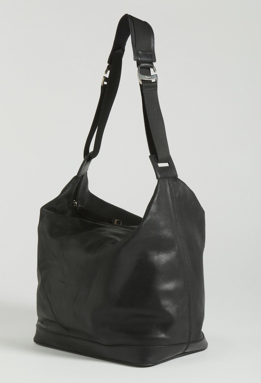 FERRAGAMO SALVATORE Borsa nera a tracolla. Pelle. Cm 40,00 x 42,00 x 23,00. Borsa in pelle nera.
