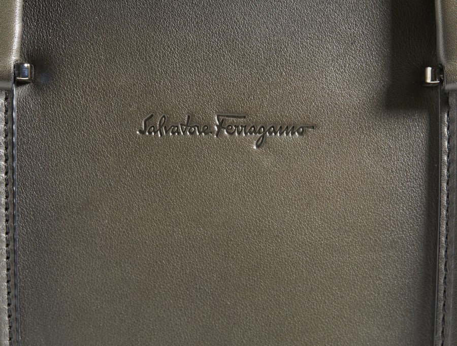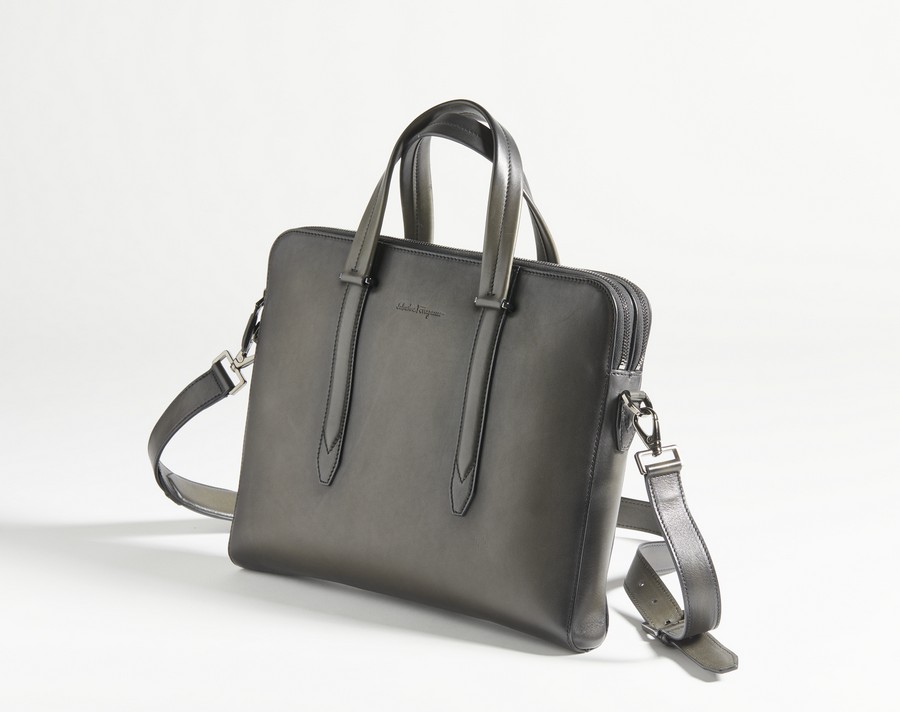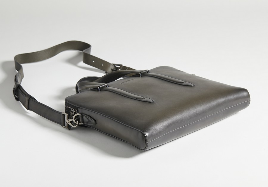 FERRAGAMO SALVATORE - Borsa per computer nera fumè .