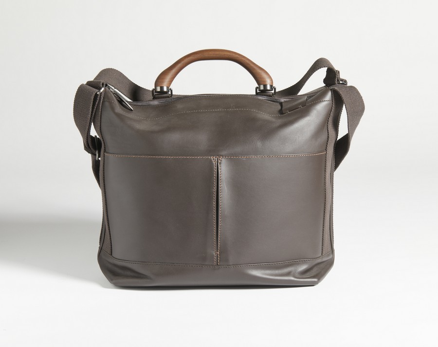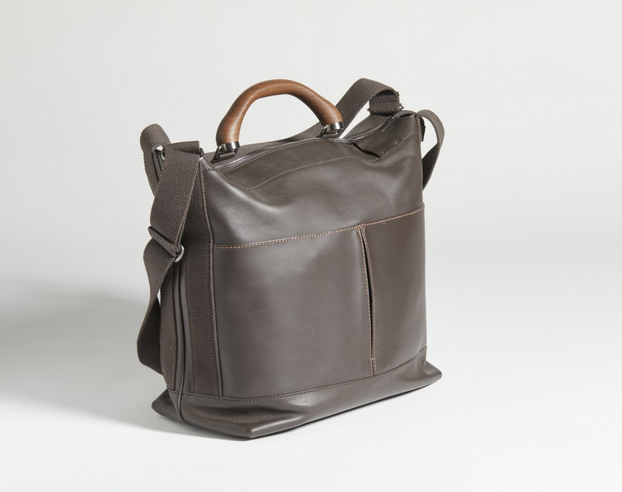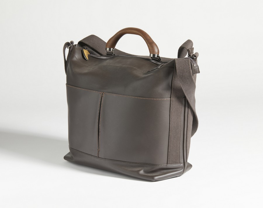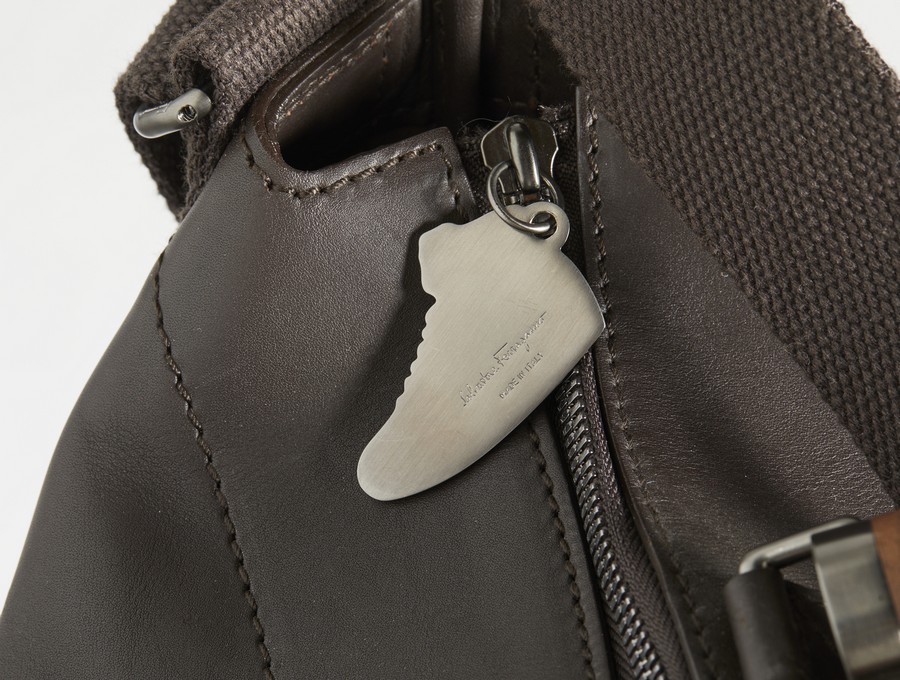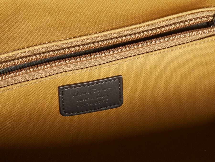 FERRAGAMO SALVATORE Borsa marrone . Pelle. Cm 42,00 x 33,00 x 20,00. Borsa in pelle marrone, manico in lego, tracolla in tessuto, apertura a zip, due tasche piatte, interno in pelle e tessuto, due tasche piatte porta cellulare e una tasca piatta con chiusura a zip, hardware color argento.