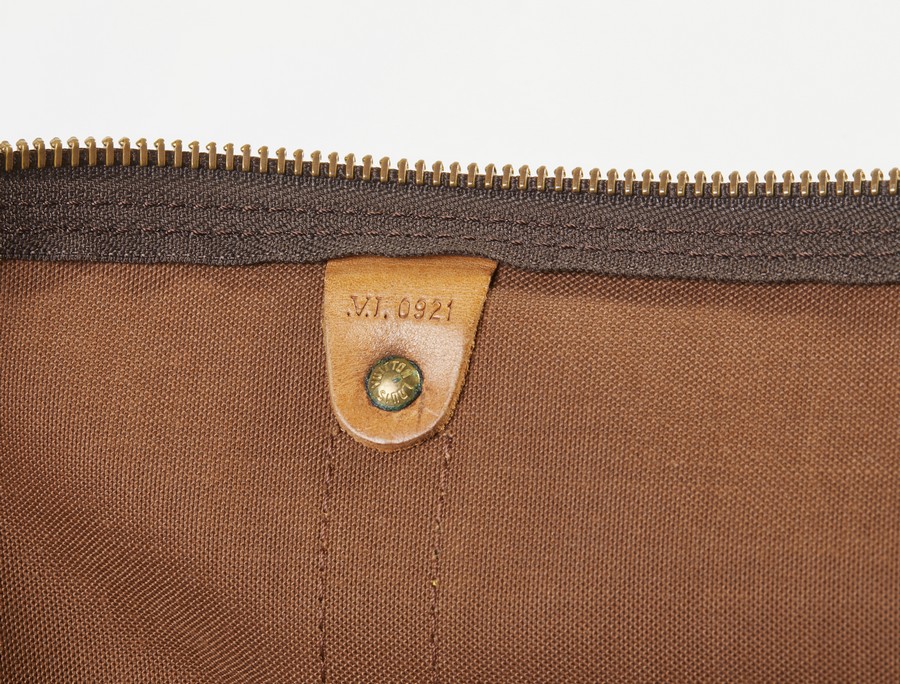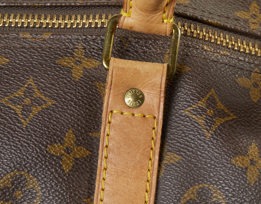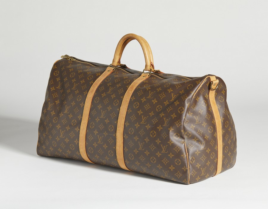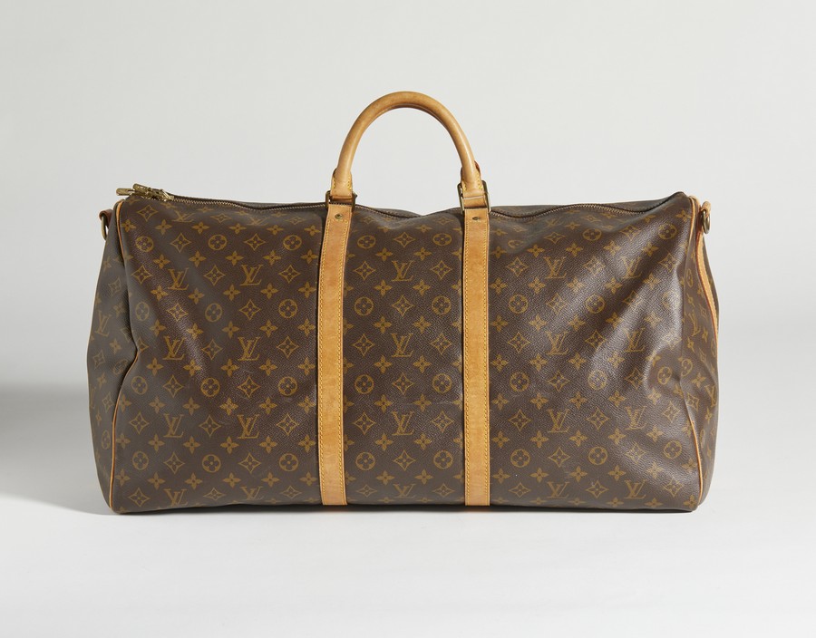 VUITTON LOUIS Borsa Keepal Monogram . Pelle. Cm 60,00 x 33,00 x 26,00. Borsone in pelle monogram, manici in pelle, tracolla in pelle, apertura a zip interni in pelle, hardware color oro.