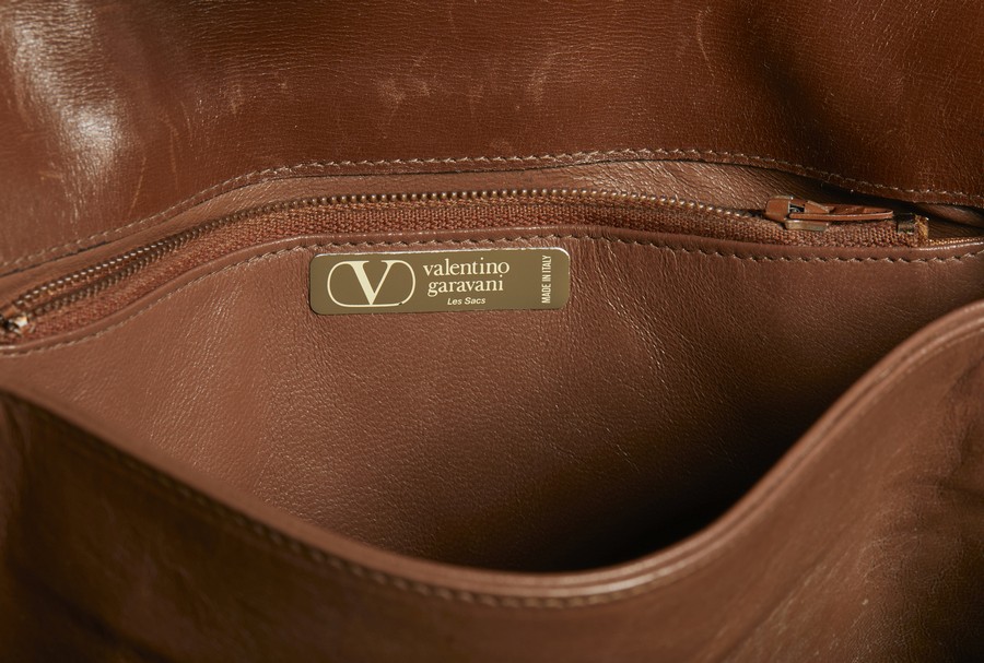 GARAVANI VALENTINO Borsa a tracolla. Pelle. Cm 17,00 x 26,00 x 6,50. Borsa a tracolla in pelle con logo al fronte in galvanica oro. Tre scomparti all'interno in pelle marrone con tasca a zip.