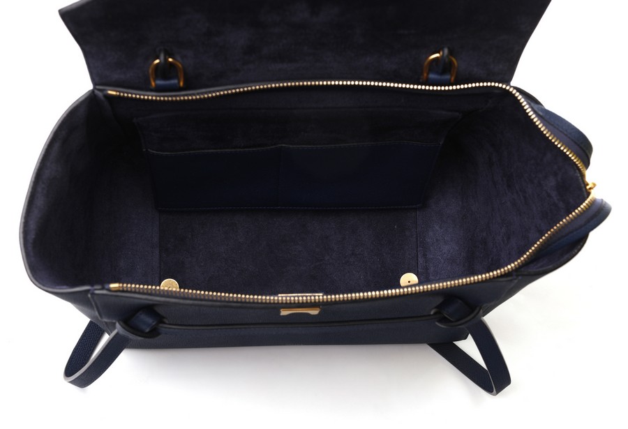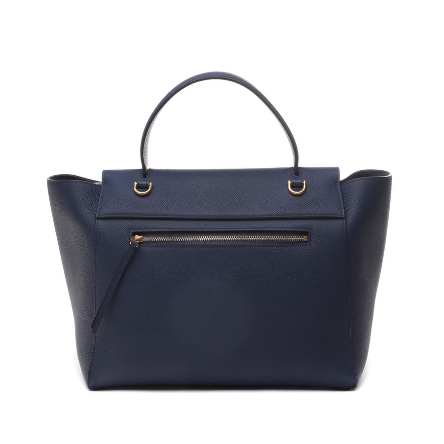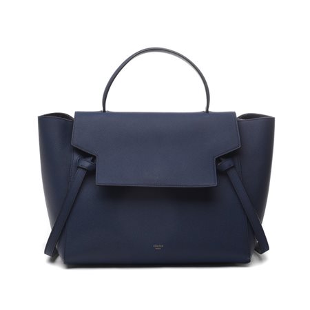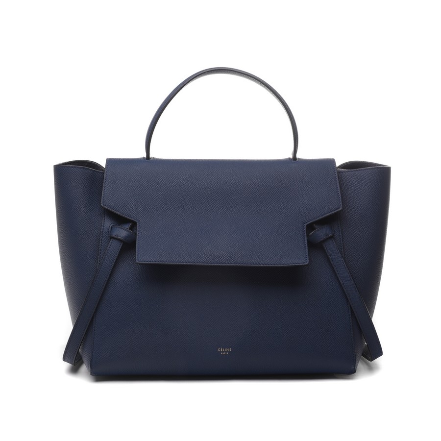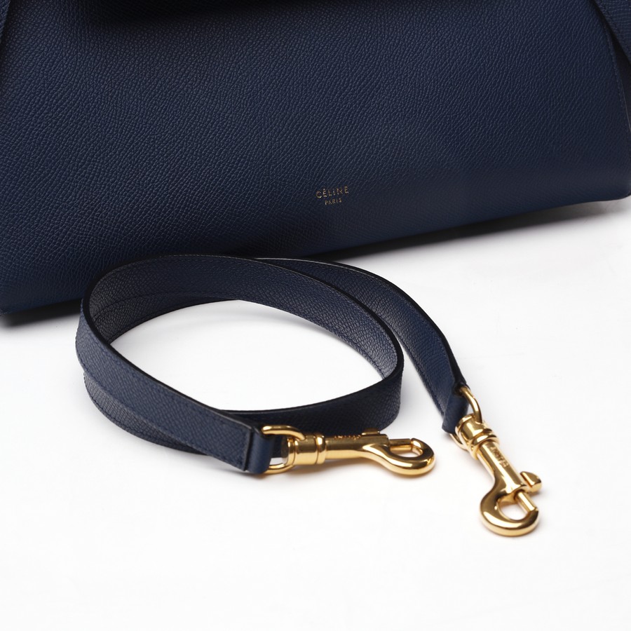 CELINE Borsa modello Belt. Pelle. Cm 27,00 x 28,00 x 18,00. Borsa a mano in pelle blu, tracolla presente. Marchio al fronte.