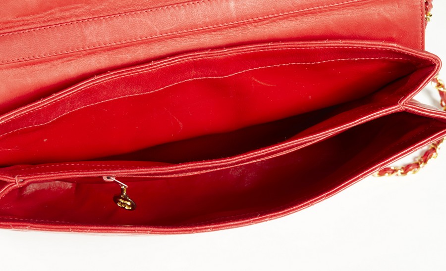 CHANEL Borsa a tracolla. Pelle. Cm 34,00 x 16,50 x 5,00. Borsa a tracolla in pelle rossa.
