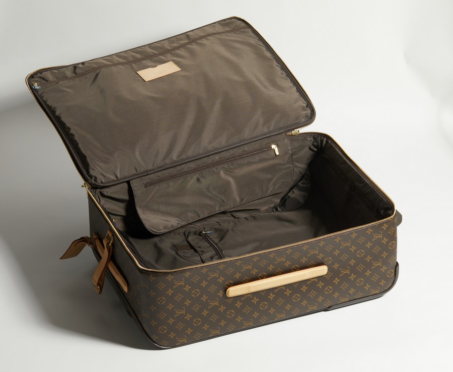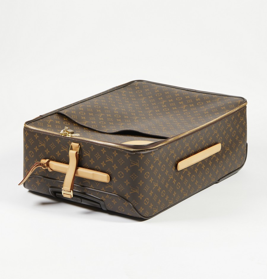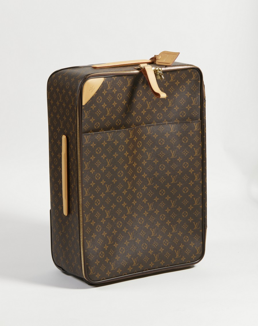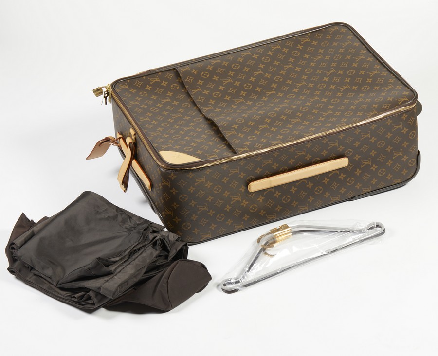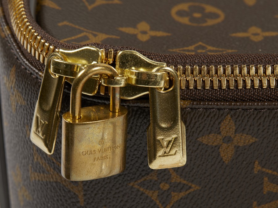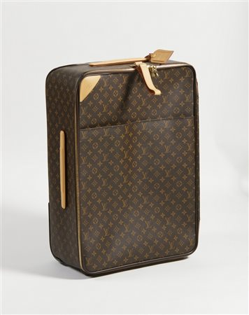 VUITTON LOUIS Trolley da viaggio . Pelle. Cm 45,00 x 67,00 x 25,00. Trolley misura media con due ruote e manico allungabile, in tessuto logo, cerniera e Hardware dorati.