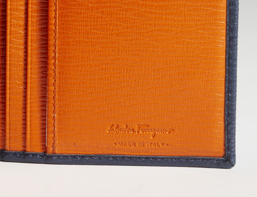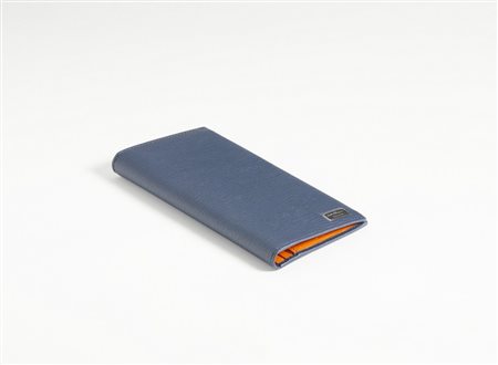 FERRAGAMO SALVATORE Portafoglio blu cobalto. Pelle. Cm 9,50 x 18,50. Portafoglio in pelle blu cobalto con logo, interno color carota con tasche piatte portacarte, tasche porta banconote e tasca con zip portamonete