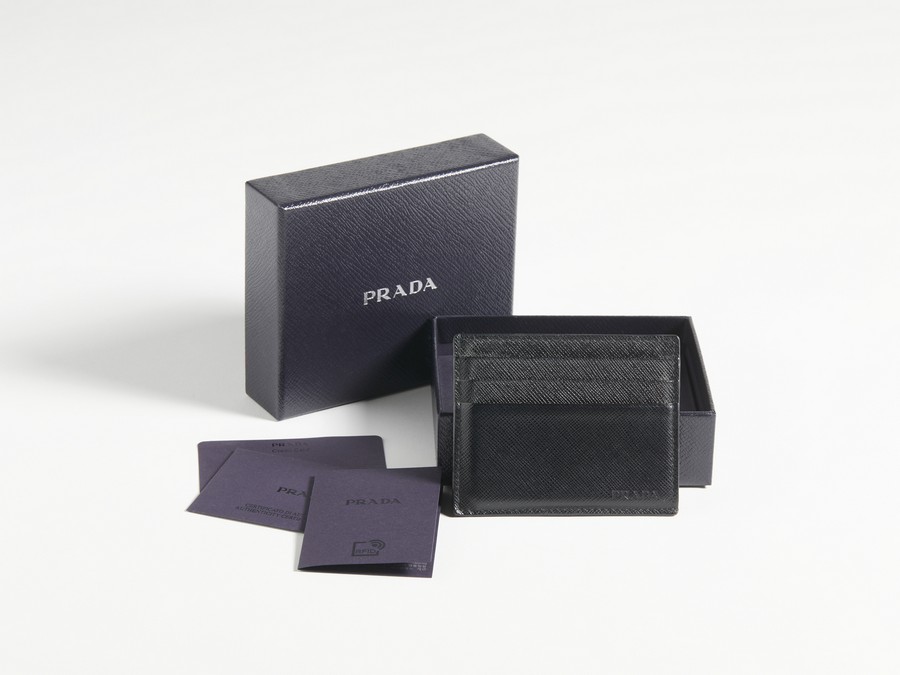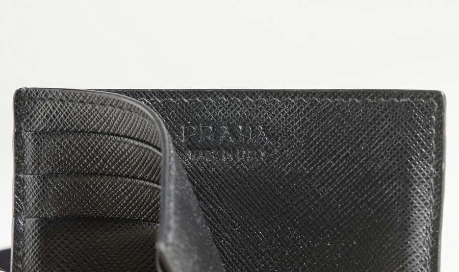 PRADA MILANO Portacarte nero . Pelle. Cm 10,00 x 8,00. Portacarte in pelle Saffiano nero. Con scatola originale.